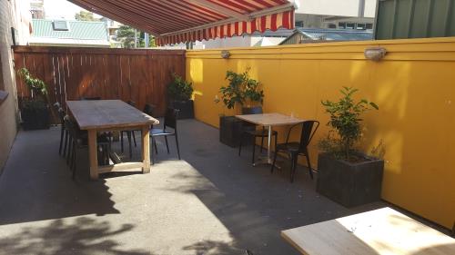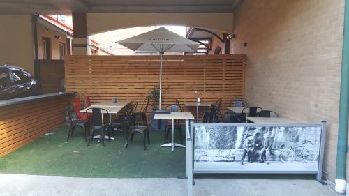 The cafe is set back from the road, with two shaded outdoor seating areas and one inside area. The cafe is spacious, with an upstairs area which is currently rented out.