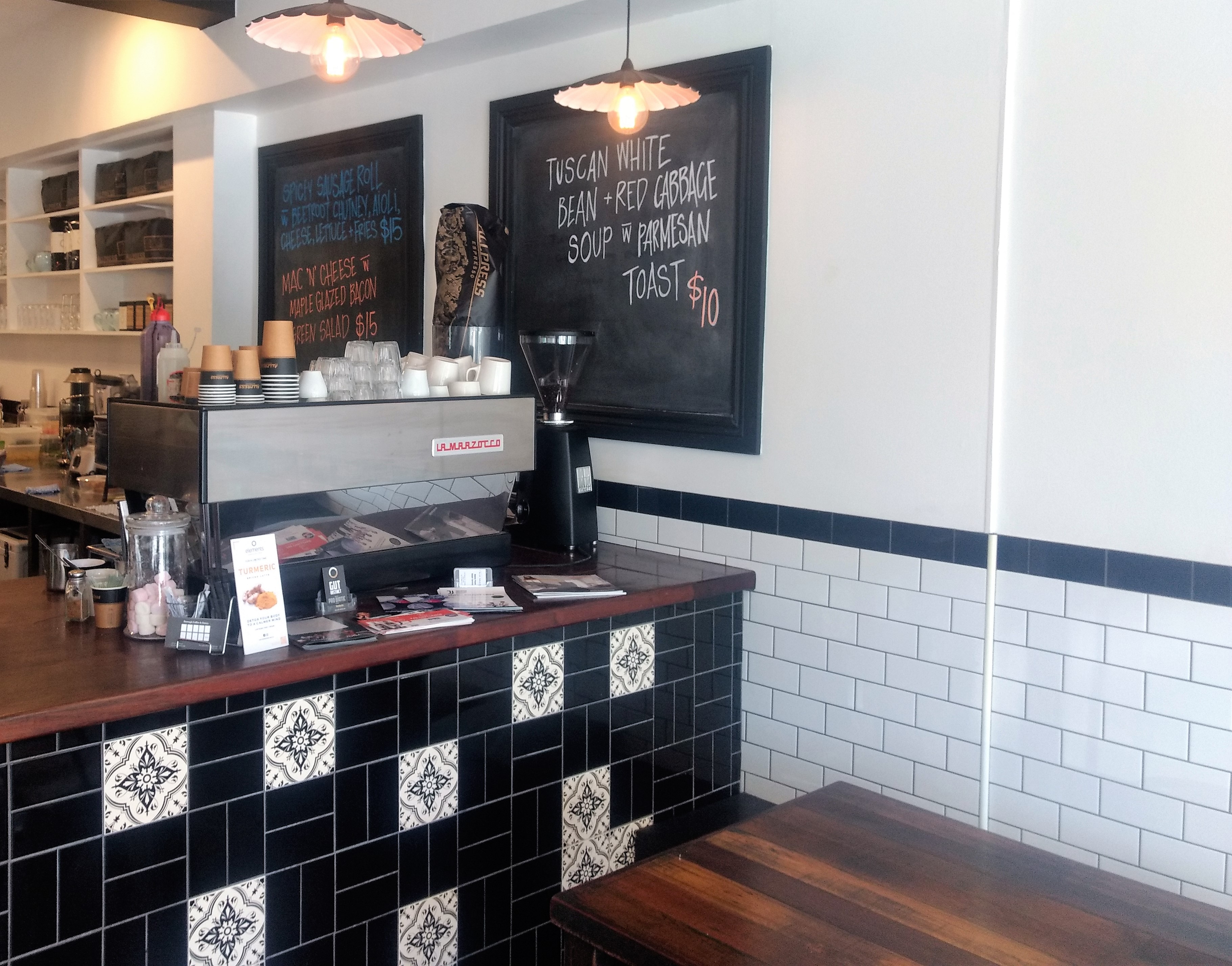 It has a beautiful fit out complete with wooden floorboards, elegant service counter and outdoor seating areas at both the front and the back.